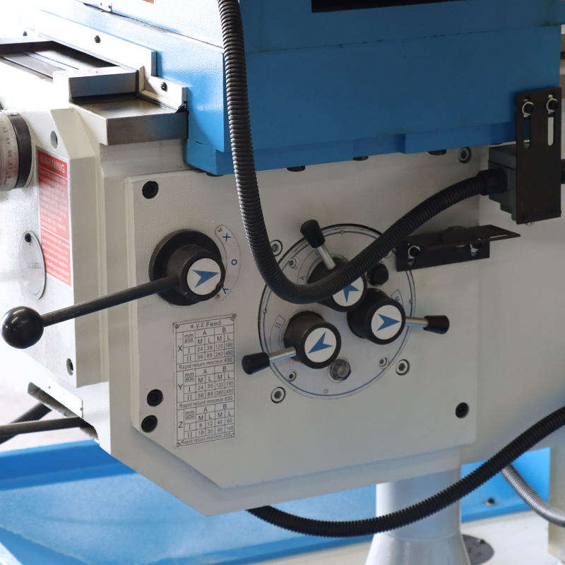 | Αυτό είναι το ψηφιακή οθόνη ελέγχου το κεντρικό διεπαφή για τη διαχείριση των παραμέτρων κατεργασίας. Διαθέτει ψηφιακή οθόνη για πραγματικού χρόνου δεδομένα (π.χ. στροφές άξονα, ρυθμός προώθησης), καθώς και λειτουργικά κουμπιά: αναγκαστική διακοπή, έλεγχος άξονα/προώθησης και επιλογή λειτουργικού καθεστώτος. Διευκολύνει την ακριβή ρύθμιση και παρακολούθηση των διαδικασιών κατεργασίας, υποστηρίζοντας τόσο χειροκίνητες όσο και ημιαυτόματες λειτουργίες. | Αυτό είναι το πλευρικός χειροκίνητος μηχανισμός ελέγχου , με έμφαση στα στοιχεία λεπτής ρύθμισης. Περιλαμβάνει μοχλούς ρύθμισης προώθησης, χειρολαβές θέσης άξονα και κουμπιά ασφάλισης. Αυτά τα εξαρτήματα επιτρέπουν στους χειριστές να πραγματοποιούν ακριβείς ρυθμίσεις για τη μετατόπιση του άξονα και την προώθηση της τραπέζης, διασφαλίζοντας την ακρίβεια σε λεπτομερείς εργασίες κατεργασίας. |