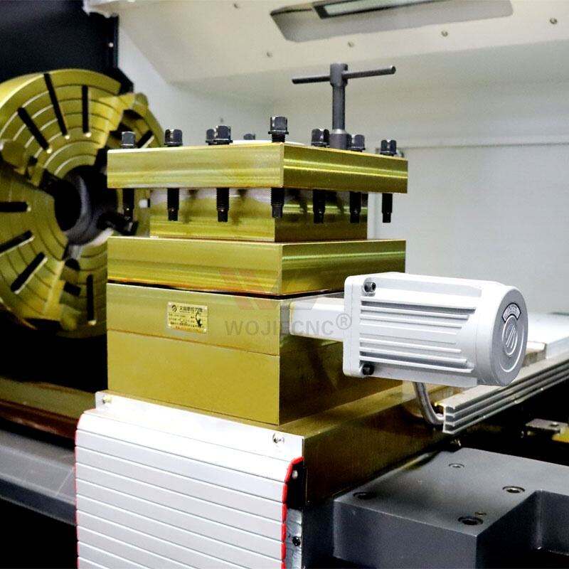 Dit is de NC 4-positiesdraaitoren met een gereedschaphandvatmaat van 12:32. Het maakt snelle gereedschapswisselingen en efficiënte bewerkingsoperaties mogelijk, wat bijdraagt aan een hoge productiviteit bij draaibewerkingen.