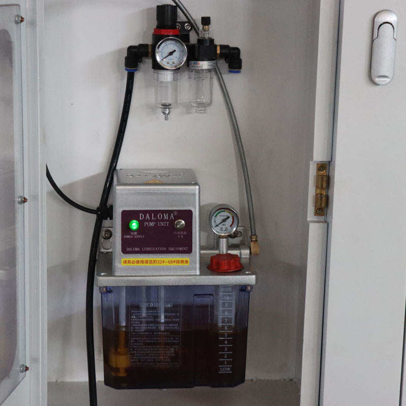 Een gecentraliseerde smeringsunit met drukmeter en olie-reservoir, die een consistente smering levert aan de geleidewegen en lagers, waardoor slijtage effectief wordt verminderd en de levensduur van de machine wordt verlengd.